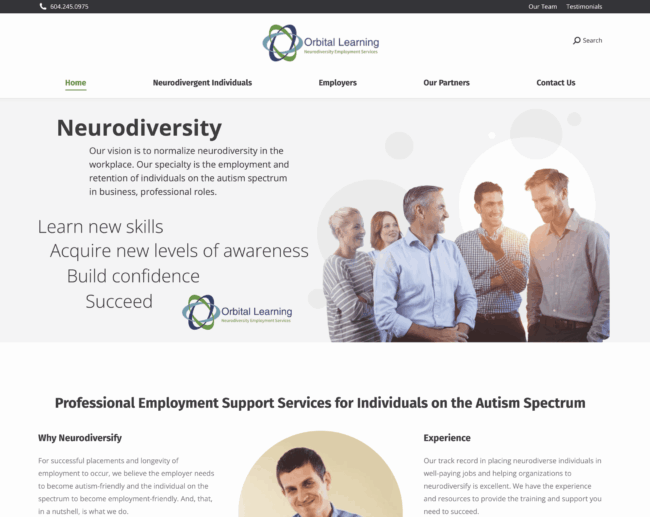 Client Orbital Learning Service Website development Visit website The Task Empowering Neurodiversity Orbital Learning is dedicated to empowering neurodiverse individuals, focusing on providing meaningful employment opportunities for those on the autism spectrum. The website showcases their commitment to creating inclusive workplaces and enhancing the employability of neurodiverse talents. In addition to its focus on employment…